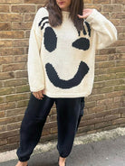 Embrace a playful blend of comfort and style with our delightful Women's Oversized Knit Jumper. This piece is the perfect addition to any casual wardrobe, designed with a relaxed silhouette for an effortless and cosy feel. Crafted from a wonderfully soft oversized knit fabric, it provides warmth and a soft texture, making it your go-to for cooler days. The standout Smiley Print adds a touch of personality and fun, ensuring you look cheerful and fashionable. With its easy layering design, this Jumper is ideal for everything from lounging at home to casual day-to-day outings, providing both comfort and a unique sense of style.