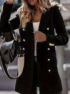Women's Double-Breasted Winter Coat - Tailored Fit with Gold-Tone Buttons