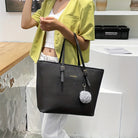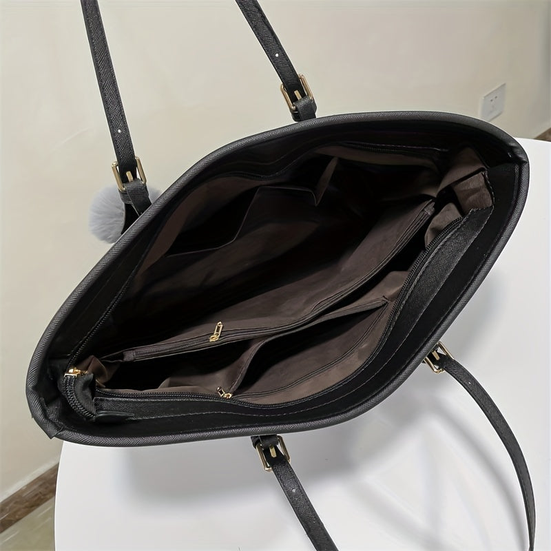 Women's Black Structured Tote Bag - Spacious Bag with Pom-Pom Charm